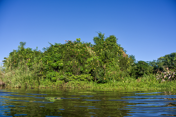 Bäume, Tiere und Pflanzen etwas näher zu begutachten. Fremdartige Bäume aber auch viele Vögel sind in der dichten Vegetation zu sehen. Nicht nur einen Fischreiher haben wir gesehen, der in aller Ruhe im
