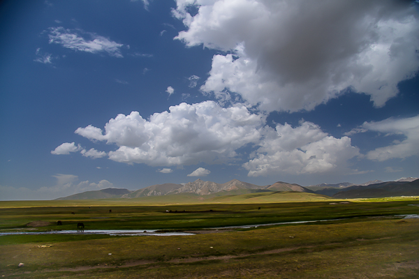 Wir sind auf dem Weg zu den Nomaden - Wir fahren in Richtung Hochgebirgssee Song Kul, einem See, der in einer Höhe von 3016 Metern liegt und etwa 270 Quadratkilometer groß ist. Der See ist in eine