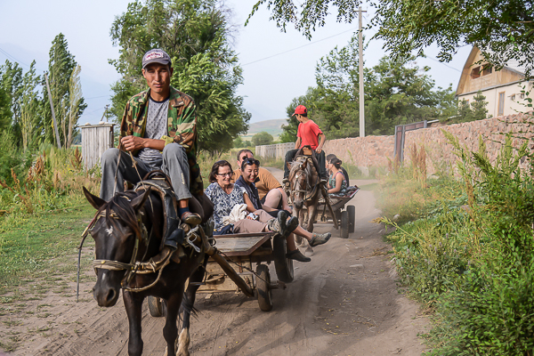 Die Pferde sind bereits eingespannt und die Reiter warten auf uns. Es sind karge Häuser, alt und auch baufällig - aber das macht hier wenig. Die Menschen sind zufrieden. Selbst elektrischer Strom ist vor-