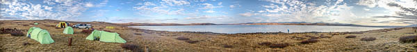 | Am Morgen sind die Regentropfen auf dem Zeltdach zu kleinen Eisklumpen gefroren. Dann kommt die Sonne heraus und es gibt Bratkartoffel mit Spiegelei und Salzgurke zum Frühstück. Da lacht das Herz!! |