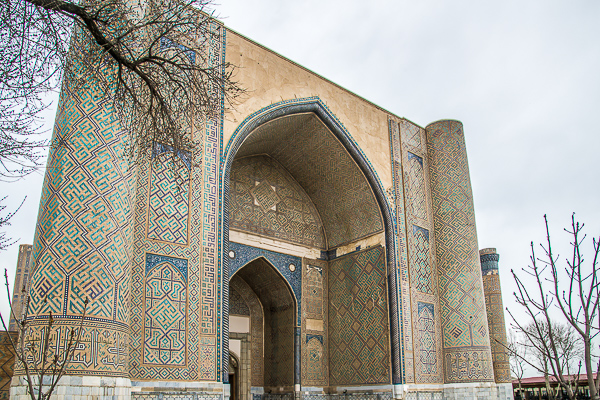 Mit dem Bau der neuen Freitagsmoschee wollte Timur seine Macht und seinen politischen und religiösen Anspruch ein Zeichen setzen. Teilweise hat Timur das Bauwerk selbst überwacht. Wir betreten die