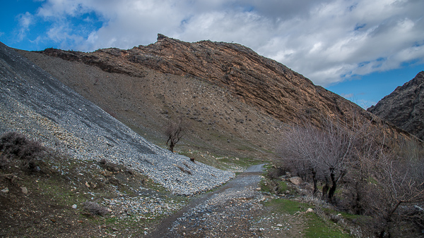 soll uns zu einer Wassermühle führen. Es ist eine steinige Landschaft - überall werden die Steine gesammelt und zu Mauern aufgeschichtet. Eine mühselige Arbeit. Wir genießen die Landschaft in der wir