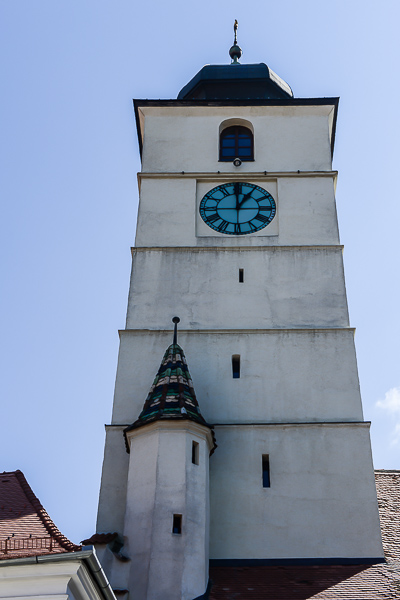 umliegenden Gebäude. Schnell gelangen wir zum Wahrzeichen von Hermannstadt, die Mächtige Evan-gelische Stadtpfarrkirche. Vor der riesigen Kirche ein Denkmal von Bischhof Teutsch. Wir besuchen auch