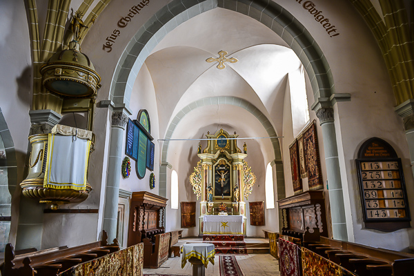 fertigten der Bildhauer Franz Eberhard und der aus Kronstadt stammende Maler Mohr. Die hölzerne Kanzel( Ende 18. Jh.) ist freischwebend an der Nordostecke des Langhauses vor dem Triumphbogen
