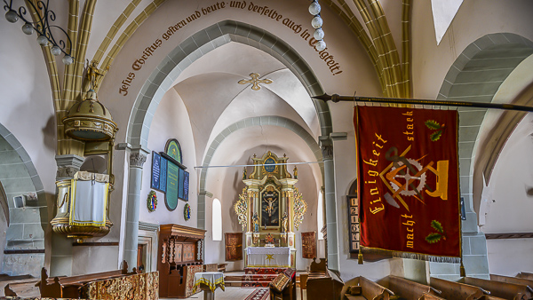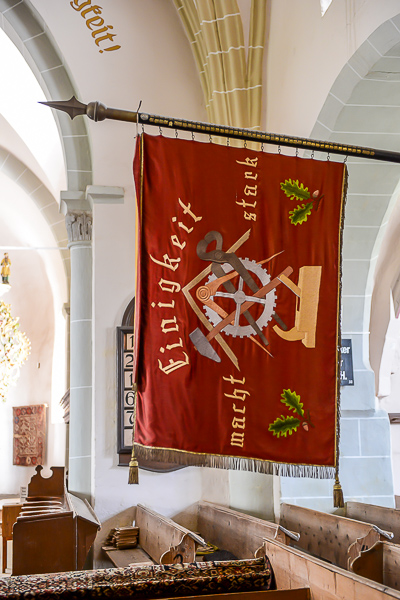Sachsen. Eine beeindruckende Kirchenburg findet sich hier. Die Kirche wurde 1280 errichtet. Eine interessante Eigentümlichkeit der Kirche bilden die Vorratskammern, die sich wie Schwalbennester unter
