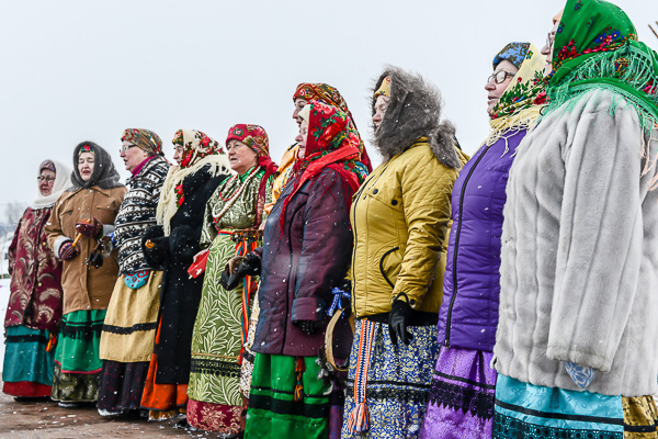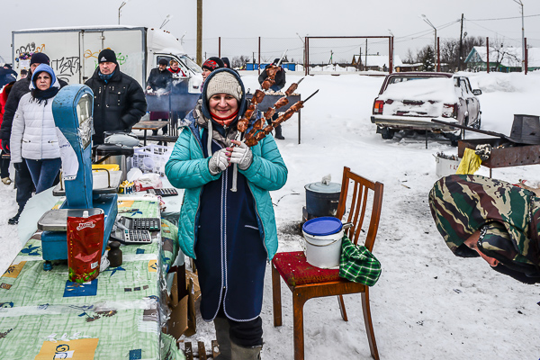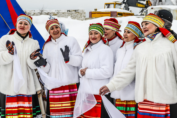 wird abgehalten. Alle sind stolz auf ihre Fahne. Wir konzentrieren uns auf die vielen Stände, die im hier im Schnee aufgebaut werden. Die Menschen haben alle dicke Jacken mit Pelzmützen an. Es ist relativ