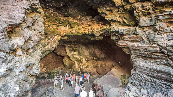 sich über sechs Kilometer ausdehnt, und vom Vulkankegel bis zum Atlantik reicht. Wir parken mit dem kleinen Auto direkt an der Höhle. Eine spanische Führung bringt uns unter die Erde. Es geht bis zu 50