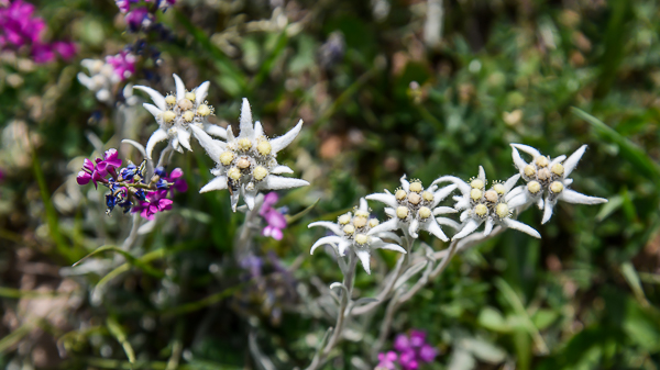 das Tal des Tölök. Wir steigen wieder aus und genießen den Ausblick. Langsam wird es Zeit, sich auch einmal um die Blumen und Pflanzen dieser Region zu kümmern. Edelweiss haben wir ja schon gesehen